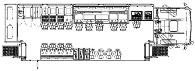 這種類型轉播車常配備8~12訊道;作為4K轉播車,導演區(qū)通常只能放6塊大屏,且多為單側拉,側拉深度一般在1.2~1.5米。當然根據(jù)用戶使用需求也有不帶側拉和雙側拉的,雙側拉時要留意超重的風險。