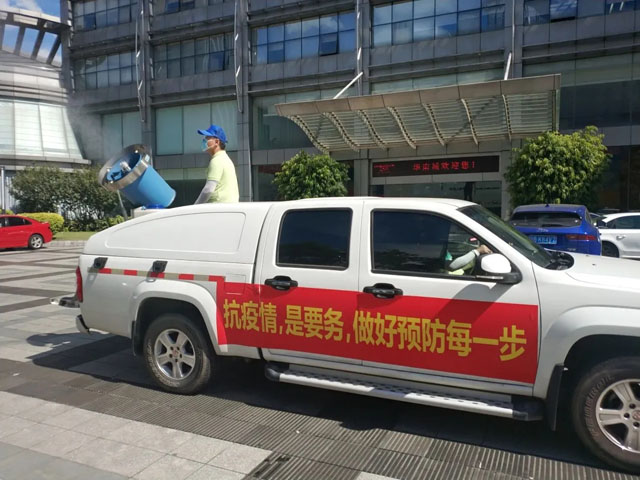 踏入7月份,烈日炎炎暴曬大地。在路上我們經(jīng)??梢钥吹揭惠v輛防疫消殺車在路上緩慢行駛。它開過的地方都會感覺云霧繚繞。防疫不能松懈,這幾天香港和新疆有局部爆發(fā)風險。所以要做好重點公共場所的清潔衛(wèi)生和防疫消殺工作。整治園區(qū)環(huán)境衛(wèi)生,車輛噴灑式新冠疫情預防性消殺工作,在加大整治環(huán)境工作力度、落實“大清掃、大消殺”等防疫工作的同時,繼續(xù)嚴防園區(qū)車輛行人卡口檢查、堅持疫情防控宣傳、進行重點人群防護等消殺防疫動作,不松懈、不間斷。